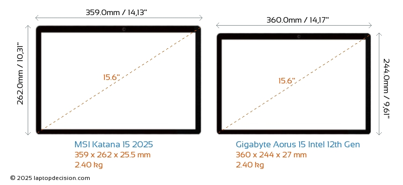 ThunderboltAorus 15 Intel 12th Gen ist mit einem Thunderbolt 4-Port ausgestattet. Katana 15 2025 hat keinen Thunderbolt-Port.
