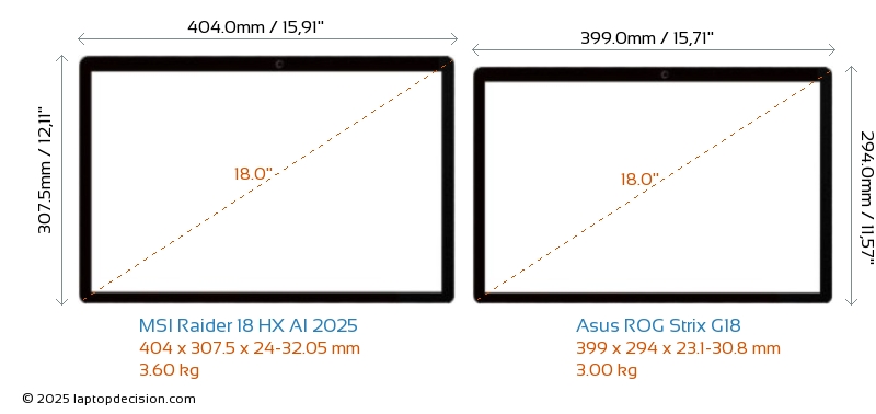 HDMIBeide, Raider 18 HX AI 2025 und ROG Strix G18, verfügen über einen HDMI-Port (1x HDMI 2.1) zum Anschluss an externe Monitore.