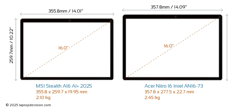 Wifi Stealth A16 AI+ 2025 bietet einen fortschrittlicheren Wi-Fi-Standard v7, was schnellere und zuverlässigere drahtlose Verbindungen im Vergleich zu Nitro 16 Intel AN16-73 (v6E) ermöglicht.