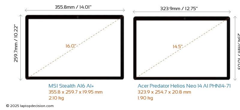HDMIBeide, Stealth A16 AI+ und Predator Helios Neo 14 AI PHN14-71, verfügen über einen HDMI-Port (1x HDMI 2.1) zum Anschluss an externe Monitore.