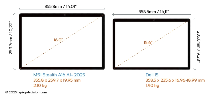 HDMIBeide, Stealth A16 AI+ 2025 und 15, verfügen über einen HDMI-Port. Stealth A16 AI+ 2025 bietet 1x HDMI 2.1, während 15 1x HDMI 1.4 bietet.
