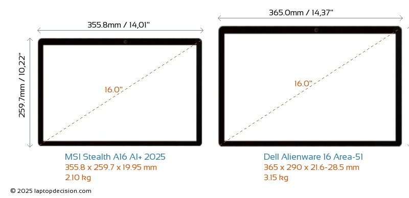 HDMIBeide, Stealth A16 AI+ 2025 und Alienware 16 Area-51, verfügen über einen HDMI-Port (1x HDMI 2.1) zum Anschluss an externe Monitore.