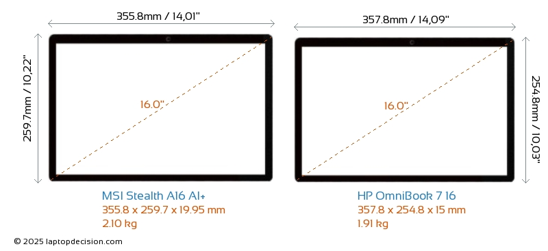 HDMIBeide, Stealth A16 AI+ und OmniBook 7 16 , verfügen über einen HDMI-Port (1x HDMI 2.1) zum Anschluss an externe Monitore.