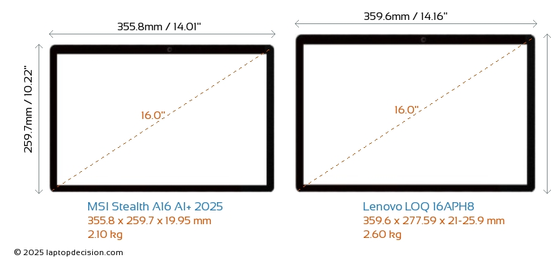 HDMIBeide, Stealth A16 AI+ 2025 und LOQ 16APH8, verfügen über einen HDMI-Port (1x HDMI 2.1) zum Anschluss an externe Monitore.