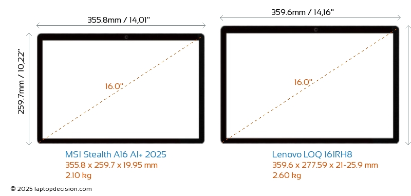 HDMIBeide, Stealth A16 AI+ 2025 und LOQ 16IRH8, verfügen über einen HDMI-Port (1x HDMI 2.1) zum Anschluss an externe Monitore.
