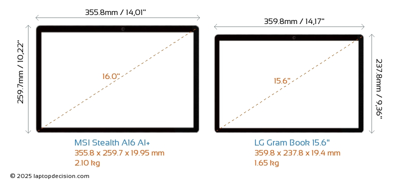 HDMIBeide, Stealth A16 AI+ und Gram Book 15.6", verfügen über einen HDMI-Port. Stealth A16 AI+ bietet 1x HDMI 2.1, während Gram Book 15.6" 1x HDMI 1.4 bietet.