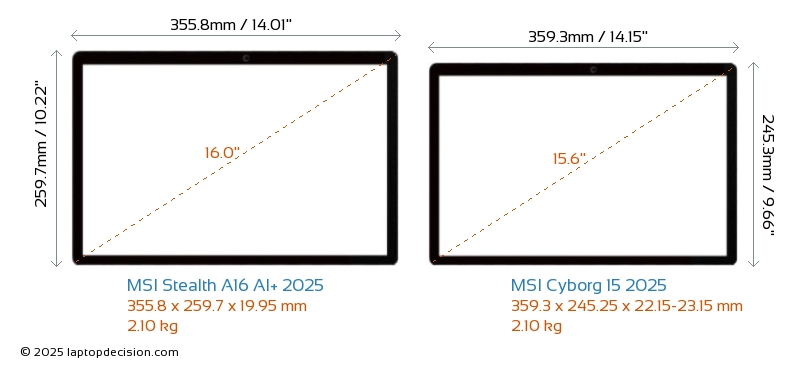 HDMIBeide, Stealth A16 AI+ 2025 und Cyborg 15 2025, verfügen über einen HDMI-Port (1x HDMI 2.1) zum Anschluss an externe Monitore.