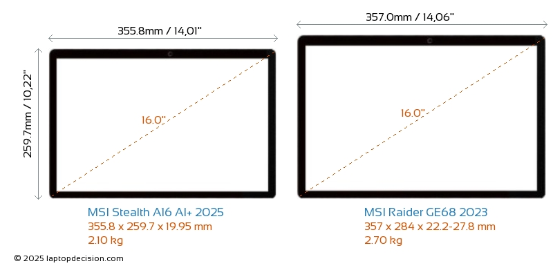 ThunderboltBeide, Stealth A16 AI+ 2025 und Raider GE68 2023, sind mit Thunderbolt 4-Ports ausgestattet.