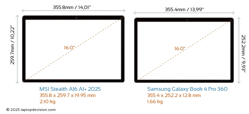 HDMIBeide, Stealth A16 AI+ 2025 und Galaxy Book 4 Pro 360, verfügen über einen HDMI-Port (1x HDMI 2.1) zum Anschluss an externe Monitore.