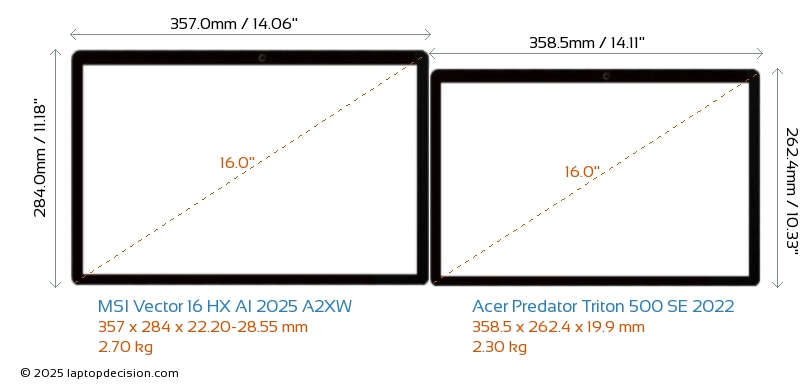 HDMIBeide, Vector 16 HX AI 2025 A2XW und Predator Triton 500 SE 2022, verfügen über einen HDMI-Port (1x HDMI 2.1) zum Anschluss an externe Monitore.