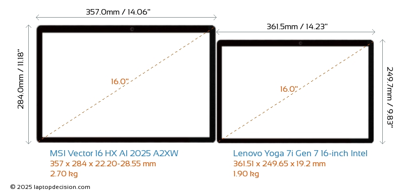 Wifi Vector 16 HX AI 2025 A2XW bietet einen fortschrittlicheren Wi-Fi-Standard v7, was schnellere und zuverlässigere drahtlose Verbindungen im Vergleich zu Yoga 7i Gen 7 16-inch Intel (v6E) ermöglicht.