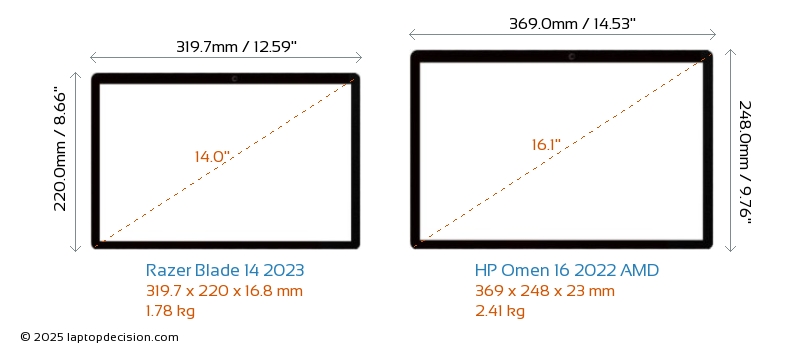 HDMIBeide, Blade 14 2023 und Omen 16 2022 AMD, verfügen über einen HDMI-Port (1x HDMI 2.1) zum Anschluss an externe Monitore.
