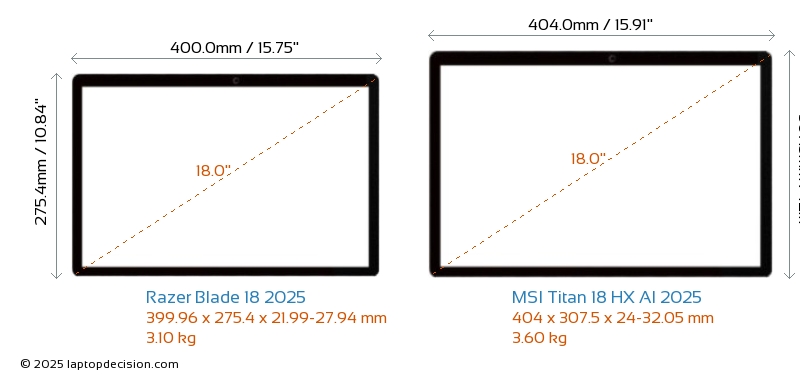 ThunderboltBeide, Blade 18 2025 und Titan 18 HX AI 2025, sind mit Thunderbolt 5-Ports ausgestattet.