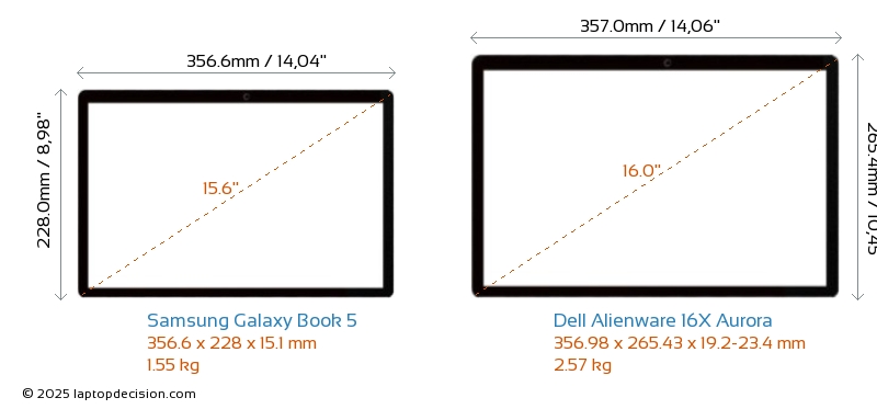 HDMIBeide, Galaxy Book 5 und Alienware 16X Aurora, verfügen über einen HDMI-Port. Galaxy Book 5 bietet 1x HDMI 1.4, während Alienware 16X Aurora 1x HDMI 2.1 bietet.