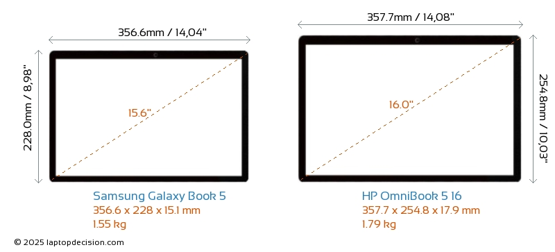 HDMIBeide, Galaxy Book 5 und OmniBook 5 16 , verfügen über einen HDMI-Port. Galaxy Book 5 bietet 1x HDMI 1.4, während OmniBook 5 16 1x HDMI 2.1 bietet.