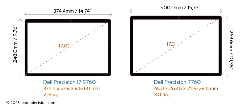 HDMIPrecision 7760 cuenta con un puerto HDMI (1x HDMI 2.1) para conectar a monitores externos. Precision 17 5760 no tiene puerto HDMI.