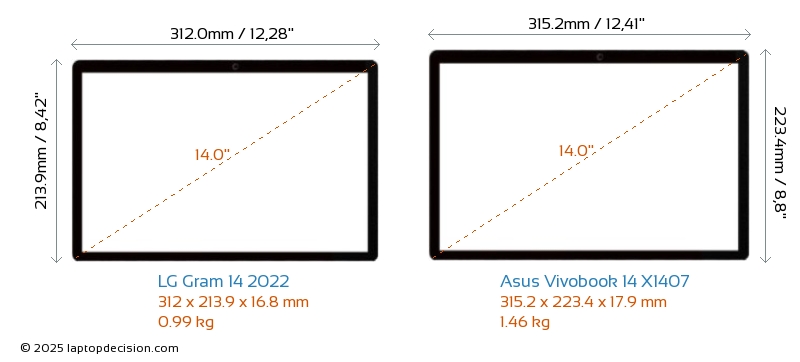 ThunderboltGram 14 2022 está equipado con un puerto Thunderbolt 4. Vivobook 14 X1407 no tiene puerto Thunderbolt.