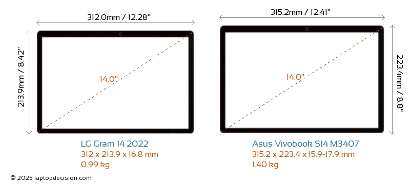 USBAmbos Gram 14 2022 y Vivobook S14 M3407 cuentan con 2x USB 3.2 puertos USB-A.Ambos Gram 14 2022 y Vivobook S14 M3407 cuentan con 2x USB 4.0 puertos USB Type-C.
