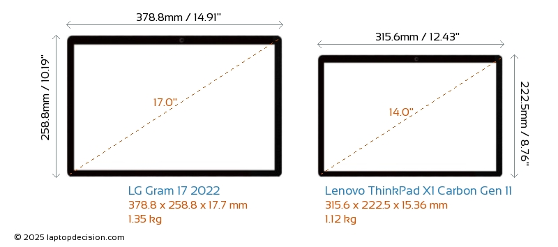 HDMIAmbos Gram 17 2022 y ThinkPad X1 Carbon Gen 11 cuentan con un puerto HDMI (1x HDMI 2.0) para conectar a monitores externos.