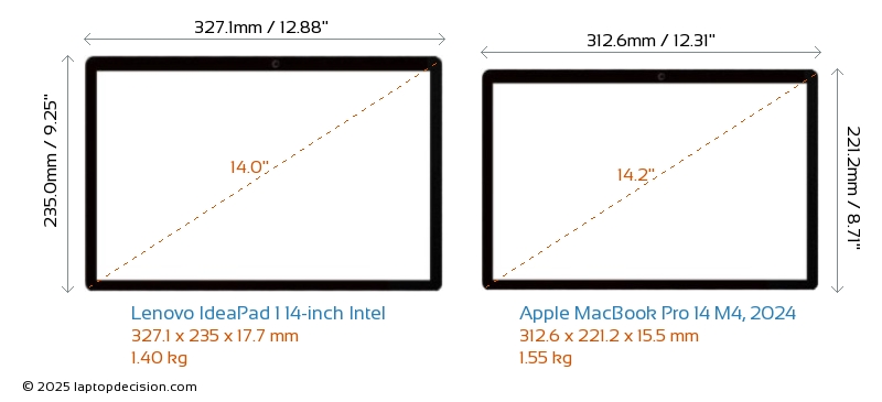 Thunderbolt MacBook Pro 14 M4, 2024 está equipado con un puerto Thunderbolt 4. IdeaPad 1 14-inch Intel no tiene puerto Thunderbolt.