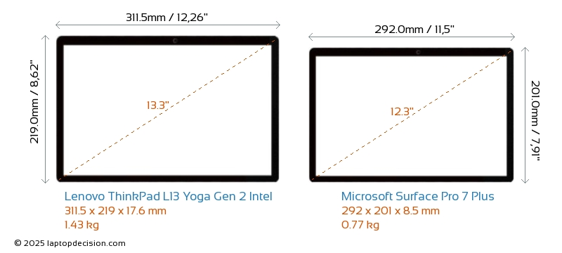ThunderboltThinkPad L13 Yoga Gen 2 Intel está equipado con un puerto Thunderbolt 4. Surface Pro 7 Plus no tiene puerto Thunderbolt.
