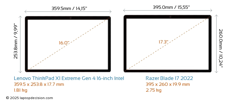 HDMIThinkPad X1 Extreme Gen 4 16-inch Intel cuenta con un puerto HDMI (1x HDMI 2.1) para conectar a monitores externos. Blade 17 2022 no tiene puerto HDMI.
