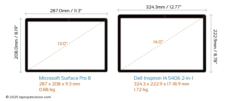 ThunderboltSurface Pro 8 está equipado con un puerto Thunderbolt 4. Inspiron 14 5406 2-in-1 no tiene puerto Thunderbolt.