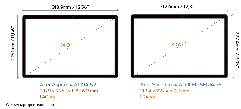 Thunderbolt Aspire 14 AI A14-52 está equipado con un puerto Thunderbolt 4. Swift Go 14 AI OLED SFG14-75 no tiene puerto Thunderbolt.