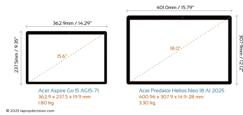 Thunderbolt Predator Helios Neo 18 AI 2025 está equipado con un puerto Thunderbolt 4. Aspire Go 15 AG15-71 no tiene puerto Thunderbolt.