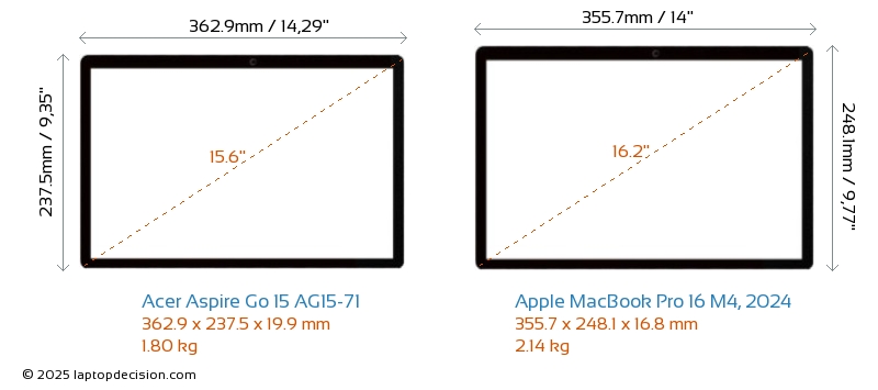 HDMIAmbos Aspire Go 15 AG15-71 y MacBook Pro 16 M4, 2024 cuentan con un puerto HDMI (1x HDMI 2.1) para conectar a monitores externos.