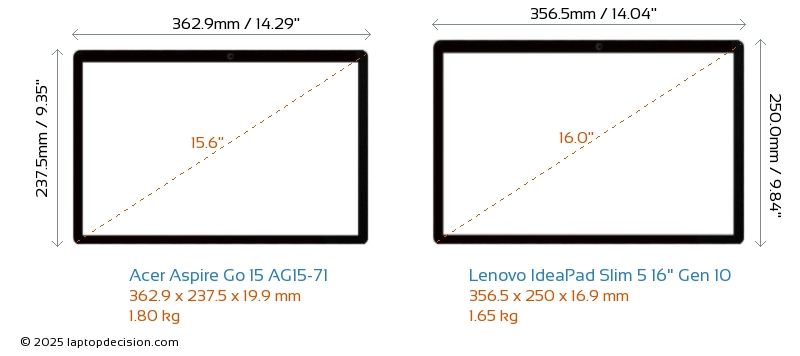 USBAmbos Aspire Go 15 AG15-71 y IdeaPad Slim 5 16" Gen 10 cuentan con 2x USB 3.2 puertos USB-A.Ambos Aspire Go 15 AG15-71 y IdeaPad Slim 5 16" Gen 10 cuentan con 2x USB 3.2 puertos USB Type-C.