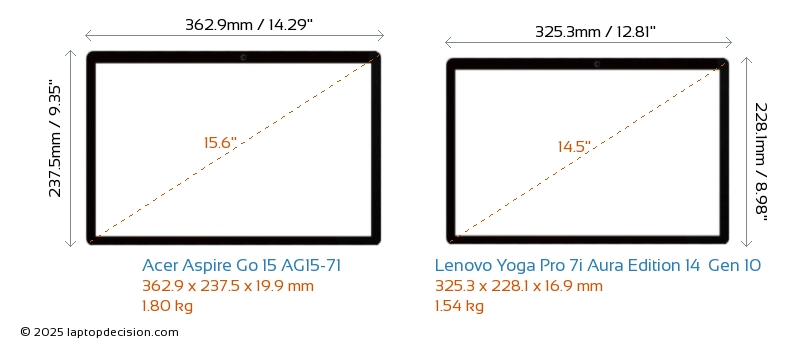 USBAmbos Aspire Go 15 AG15-71 y Yoga Pro 7i Aura Edition 14 Gen 10 cuentan con 2x USB 3.2 puertos USB-A.Ambos Aspire Go 15 AG15-71 y Yoga Pro 7i Aura Edition 14 Gen 10 tienen puertos USB Type-C. Aspire Go 15 AG15-71 tiene 2x USB 3.2 puertos USB Type-C, mientras que Yoga Pro 7i Aura Edition 14 Gen 10 tiene 2x USB 4.0 puertos USB Type-C.