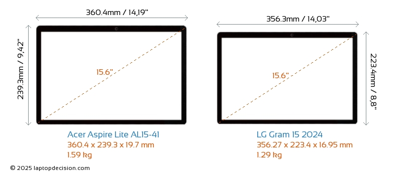 HDMIAmbos Aspire Lite AL15-41 y Gram 15 2024 cuentan con un puerto HDMI. Aspire Lite AL15-41 ofrece 1x HDMI 1.4, mientras que Gram 15 2024 ofrece 1x HDMI 2.1.