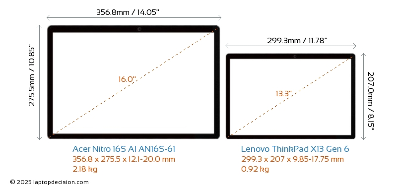 HDMIAmbos Nitro 16S AI AN16S-61 y ThinkPad X13 Gen 6 cuentan con un puerto HDMI (1x HDMI 2.1) para conectar a monitores externos.