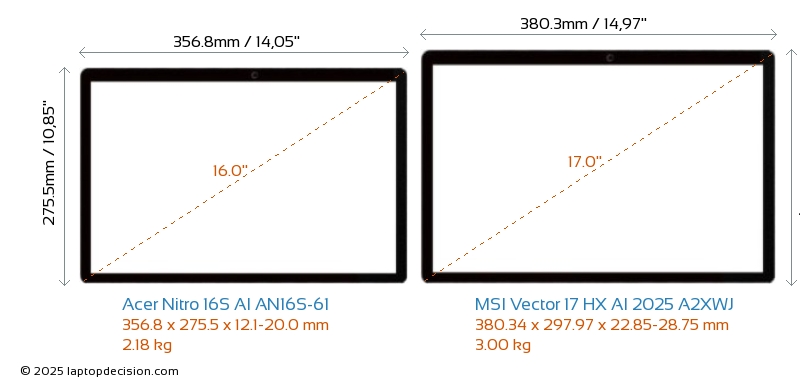 HDMIAmbos Nitro 16S AI AN16S-61 y Vector 17 HX AI 2025 A2XWJ cuentan con un puerto HDMI (1x HDMI 2.1) para conectar a monitores externos.