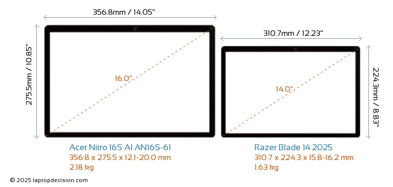 HDMIAmbos Nitro 16S AI AN16S-61 y Blade 14 2025 cuentan con un puerto HDMI (1x HDMI 2.1) para conectar a monitores externos.