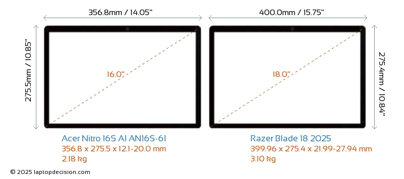 HDMIAmbos Nitro 16S AI AN16S-61 y Blade 18 2025 cuentan con un puerto HDMI (1x HDMI 2.1) para conectar a monitores externos.