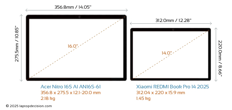 HDMIAmbos Nitro 16S AI AN16S-61 y REDMI Book Pro 14 2025 cuentan con un puerto HDMI (1x HDMI 2.1) para conectar a monitores externos.