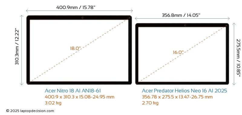 USBAmbos Nitro 18 AI AN18-61 y Predator Helios Neo 16 AI 2025 cuentan con 3x USB 3.2 puertos USB-A.Ambos Nitro 18 AI AN18-61 y Predator Helios Neo 16 AI 2025 cuentan con 2x USB 4.0 puertos USB Type-C.