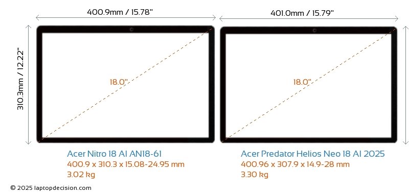 Thunderbolt Predator Helios Neo 18 AI 2025 está equipado con un puerto Thunderbolt 4. Nitro 18 AI AN18-61 no tiene puerto Thunderbolt.