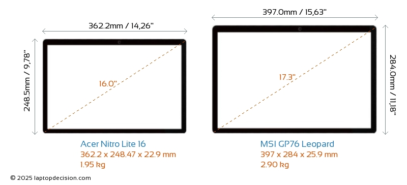 HDMIAmbos Nitro Lite 16 y GP76 Leopard cuentan con un puerto HDMI (1x HDMI 2.1) para conectar a monitores externos.