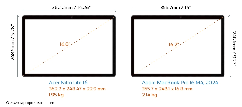 HDMIAmbos Nitro Lite 16 y MacBook Pro 16 M4, 2024 cuentan con un puerto HDMI (1x HDMI 2.1) para conectar a monitores externos.