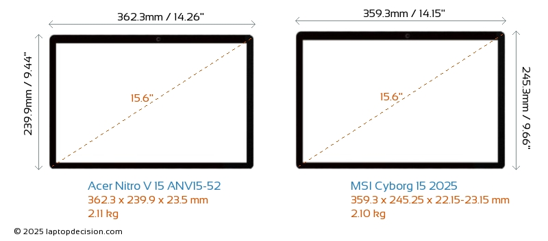 Thunderbolt Nitro V 15 ANV15-52 está equipado con un puerto Thunderbolt 4. Cyborg 15 2025 no tiene puerto Thunderbolt.