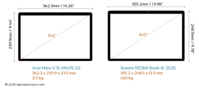 HDMIAmbos Nitro V 15 ANV15-52 y REDMI Book 16 2025 cuentan con un puerto HDMI (1x HDMI 2.1) para conectar a monitores externos.