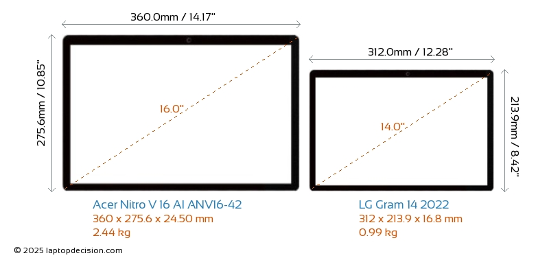 ThunderboltGram 14 2022 está equipado con un puerto Thunderbolt 4. Nitro V 16 AI ANV16-42 no tiene puerto Thunderbolt.