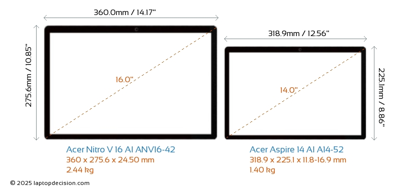 Thunderbolt Aspire 14 AI A14-52 está equipado con un puerto Thunderbolt 4. Nitro V 16 AI ANV16-42 no tiene puerto Thunderbolt.