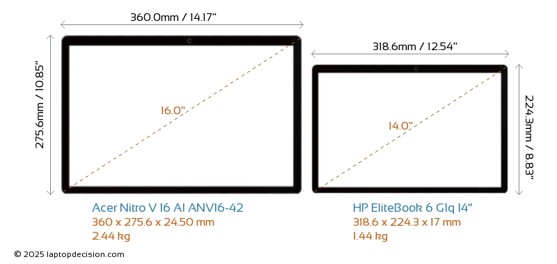 ThunderboltNinguno de los dos Nitro V 16 AI ANV16-42 ni EliteBook 6 G1q 14" tiene puerto Thunderbolt.