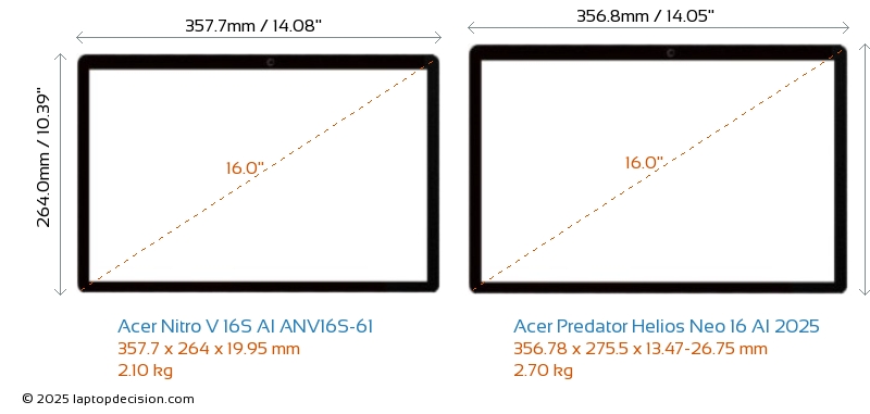 HDMIAmbos Nitro V 16S AI ANV16S-61 y Predator Helios Neo 16 AI 2025 cuentan con un puerto HDMI (1x HDMI 2.1) para conectar a monitores externos.