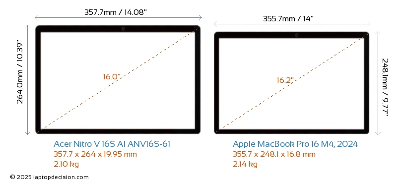 HDMIAmbos Nitro V 16S AI ANV16S-61 y MacBook Pro 16 M4, 2024 cuentan con un puerto HDMI (1x HDMI 2.1) para conectar a monitores externos.