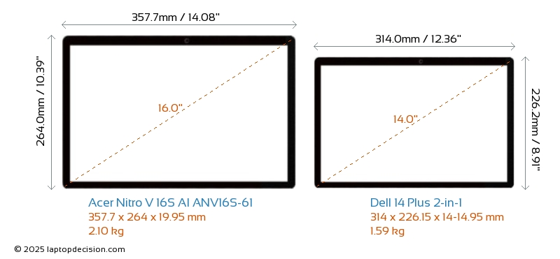 Thunderbolt 14 Plus 2-in-1 está equipado con un puerto Thunderbolt 4. Nitro V 16S AI ANV16S-61 no tiene puerto Thunderbolt.